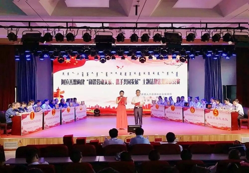 为全面贯彻落实党的十九大精神,教育引导企业经营者积极履行社会责任,促进劳资双方互利共赢,积极营造和谐劳动关系良好环境,促进企业健康有序发展,阿拉善盟工会、人力资源和社会保障局、工商联于2018年7月25日在盟老干部活动中心联合举办了阿拉善盟“构建和谐劳动关系、携手共同发展”主题法律法规知识竞赛。
